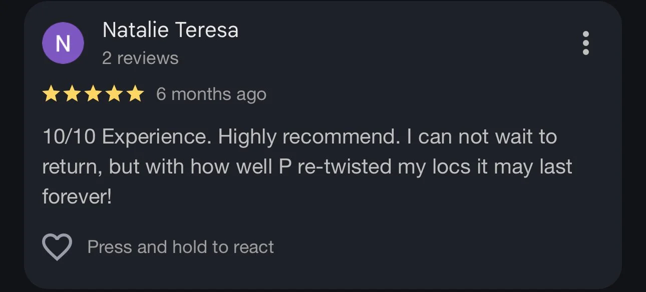 Portia believes that locs are more than just a hairstyle; they are a form of self-expression and cultural identity. Committed to using high-quality, natural products, she prioritizes hair health and individual care in every appointment.