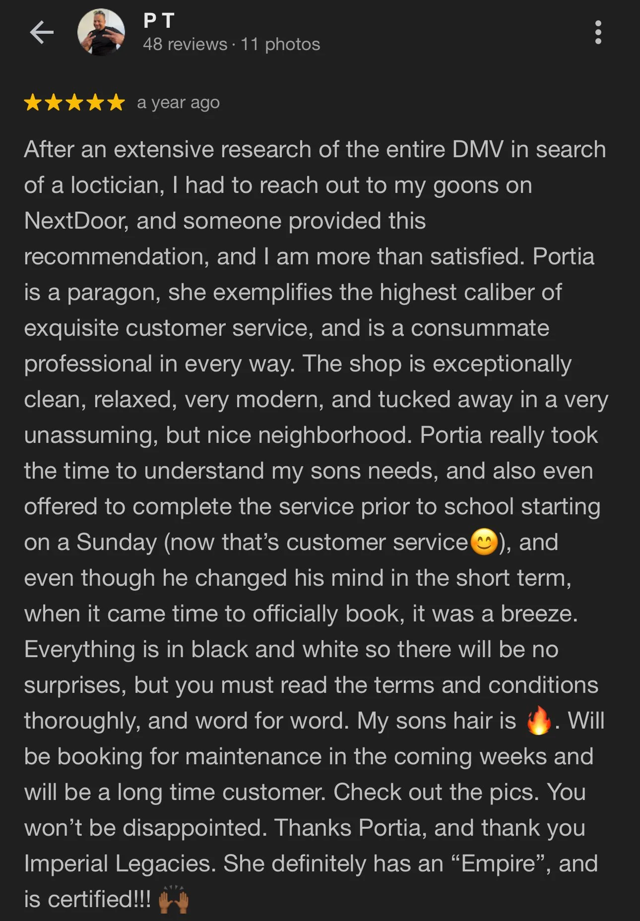 Whether you’re starting your loc’d journey or looking to refresh your existing style, Portia provides a welcoming atmosphere and expert guidance to help you achieve your vision. Join her in celebrating the beauty of natural hair, one loc at a time
